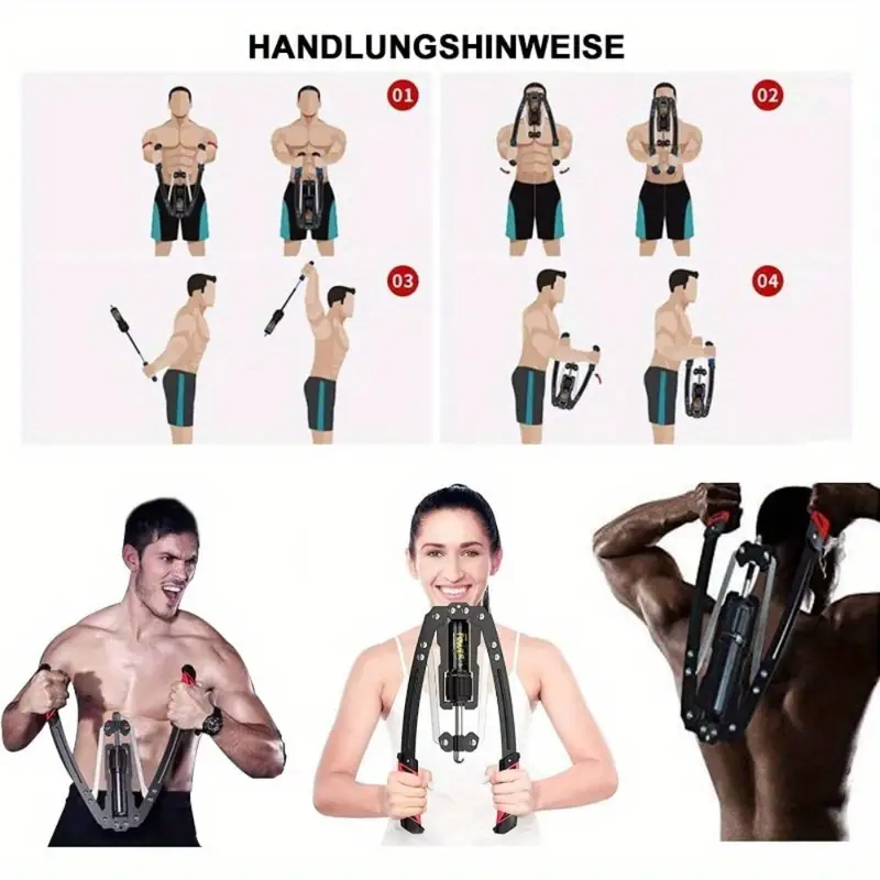 Verstellbarer Hydraulischer Brusttrainer mit Armtrainingsgerät – Hochbelastbares 10-200kg/22-440lbs Widerstandssystem inkl. Doppel-Federmechanismus, Verriegelungsfunktion & Polster für Fitnessstudio, Muskelaufbau Armbau (Schwarz)